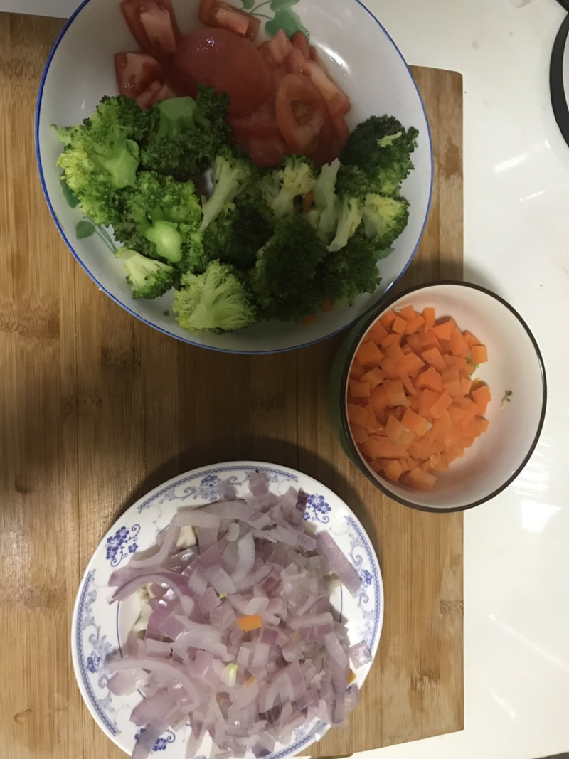 蔬菜和蜂蜜鸡小胸的合理搭配,菜有了,肉有了,主食有了,两全其美。