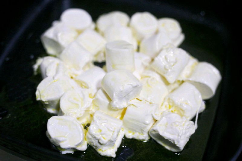 ①奶粉一部分撒入棉花糖中,留一部分撒在雪花酥上才有雪花的氛围。