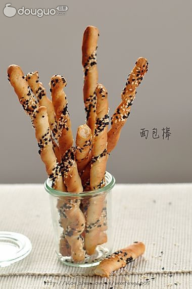 3、面包棒放入烤箱时,两头要粘牢一下,否则卷会散开。