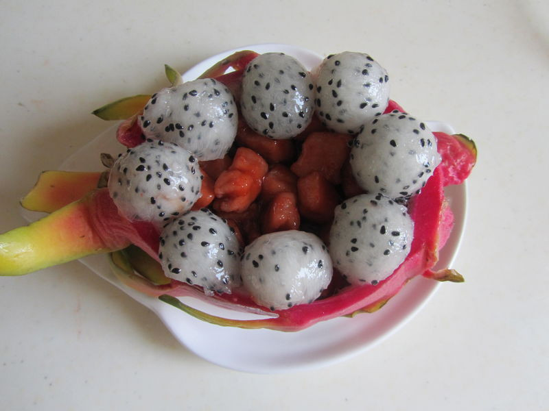 1. 樱桃肉搭配上一些水果, 可以解腻, 当然你可以用其它水果;