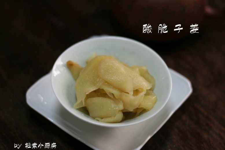 在子姜上市的季节,看着嫩黄的姜身上顶着娇红的姜芽,总是忍不住想把它们都带回家。每年都会准备一大盒果醋子姜,早上起来和他一起嚼上两三片,一股暖暖的感觉从胃部散发到全身,真的好舒服呀。子姜中的姜辣素进入体内后,能产生一种抗氧化本酶,它有很强的对付氧自由基的本领,比维生素E还要强得多。所以,吃姜抗衰老,老年人常吃子姜还可除“老年斑”,就这样简简单单,打造出健康美容食品。偷偷告诉你哦:腌制的子姜时间越长,还约脆口呢,嚼着吱吱响,(*^__^*) 嘻嘻……