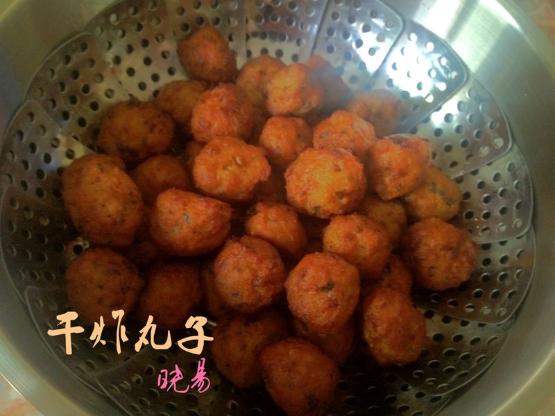 p.p.p.s如果是素食主义者的话可以把肉馅换成:胡萝卜+香菜+粉丝。不用加水淀粉。炸素丸子也很好吃。而且没有胡萝卜与香菜的古怪味道。这是本人的家里人的亲身经历(不吃香菜的人吃了一小笸箩丸子= =)