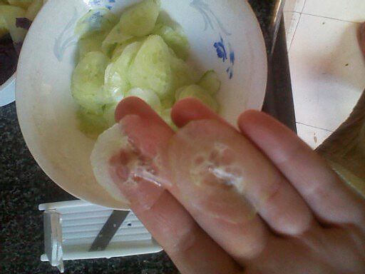 2.黄瓜片能切多薄切多薄(在这里分享下黄瓜面膜切片器 发现这玩意儿切面膜片很完美 用在厨房也很赞捏 淘宝上淘的也就两三块钱 瞧瞧切的跟纸似的)