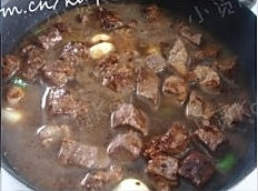 本来应该留更多汤汁的,结果最后炖好准备收汁的时候,楼上吃素的室友正好下来做饭。牛肉味这么浓我又不好意思当着他的面揭开锅盖,只好把火关到最小等他先做完饭我再来收汁。结果他结束的时候,锅里的汁已经几乎收干了,我那个伤心啊。。。哎。。。算了。。。干一点也有干一点的好吃,总不能为了自己的口味而侵犯别人的宗教信仰吧。童鞋们做这道菜的时候记得吸取教训,多留点汤汁拌饭,一定爽翻!