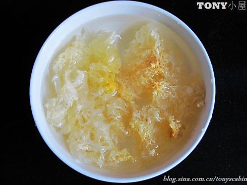 一看:千万不要购买“雪白”、“漂亮”的白木耳,白木耳的本色应为淡黄色,根部的颜色略深。