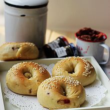 温暖的食物会带来一种力量,对我这种吃货来说尤甚,上次囤了一大包的草莓干,一直不知怎么消耗,忽然就想吃贝果了,冬天,还是喜欢这种可以大口咀嚼的面包,口感很好,对于爱甜的我,草莓干的加入让人惊喜