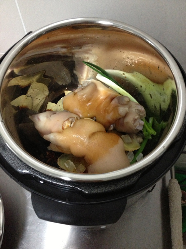 黄豆花生和猪蹄一起下高压锅炖,出来很软糯,口感也很好。如果有红烧汁,可以直接加红烧汁,就可以少放老抽、生抽和冰糖了,味道也更好。