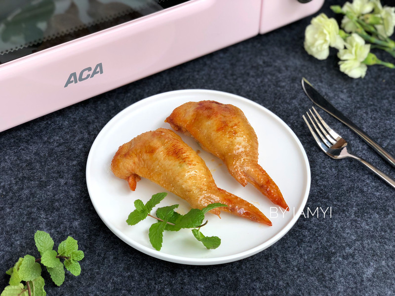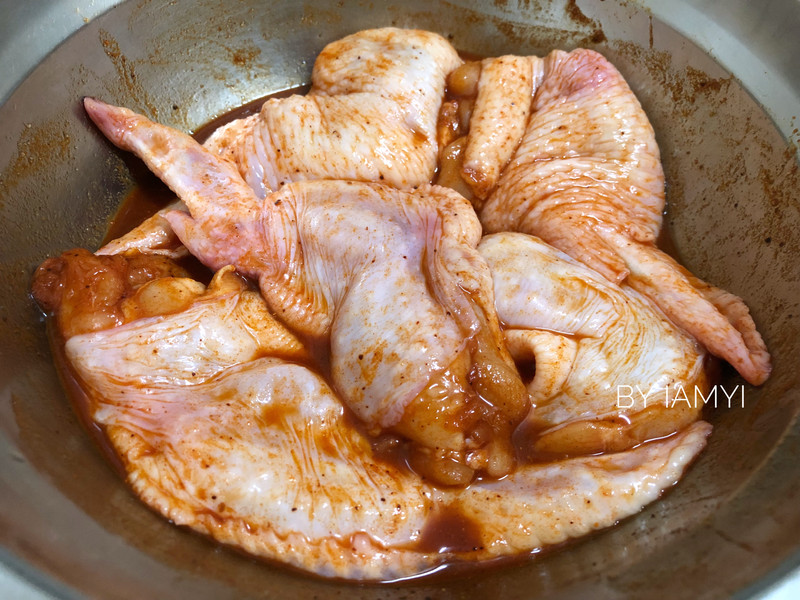 2、 烘烤至20分钟时,可取出鸡翅刷上一层蜂蜜水,使其更加上色;