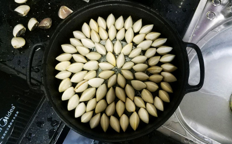 花开富贵吉祥卜卜贝,为啥叫卜卜贝,因为贝类熟后会一个个“卜”一声打开的声音而命名,将白贝整齐摆放在锅里就像开了的花一样,过年要有好彩头取名花开富贵吉祥卜卜贝!