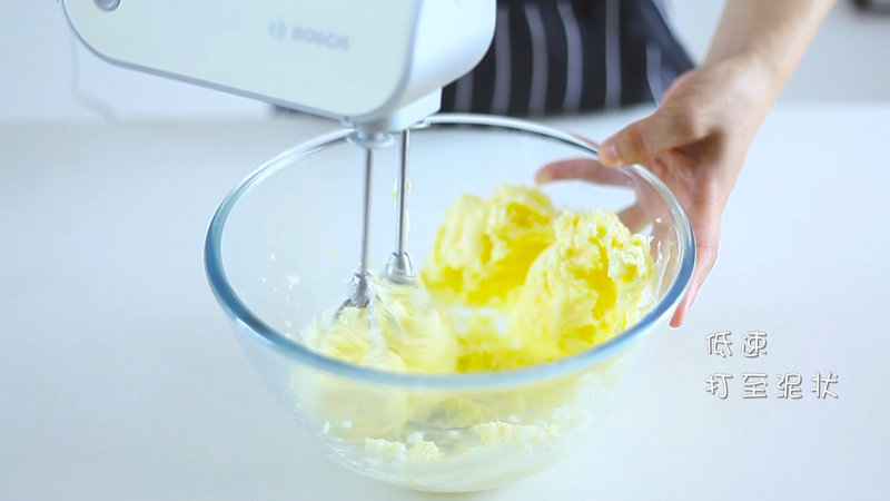 将蛋黄和蛋白(蛋白霜)分别加入打发至奶油状的黄油中,成品比全蛋磅蛋糕更酥松。