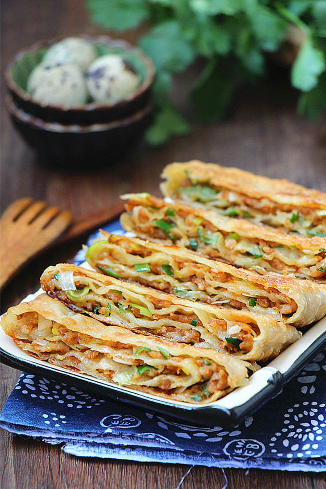 这种牛肉饼最大的特点就是四层面皮夹着三层牛肉馅,一层层面皮薄如纸,夹带着满满的牛肉馅。外表金黄,咬上一口,外皮酥脆,牛肉馅鲜香,超级满足……