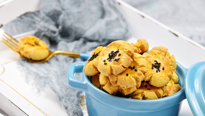 黄油可以提前拿出来室温软化,如果是冬天室温无法软化,我们可以借用吹风筒吹一会,有点软化就可以啦!一定要记住囖不可以融化哟~融化掉的话就没有办法打发嘞!假如你不小心软化过头乐嘞,那么就重新放回冰箱冷藏,冻硬点重新开始哟~黑芝麻南瓜酥的烹饪技巧