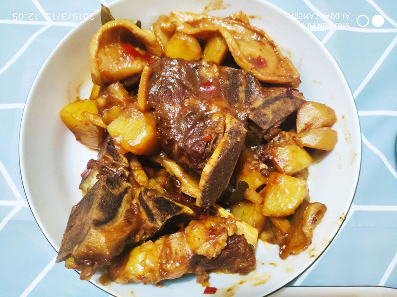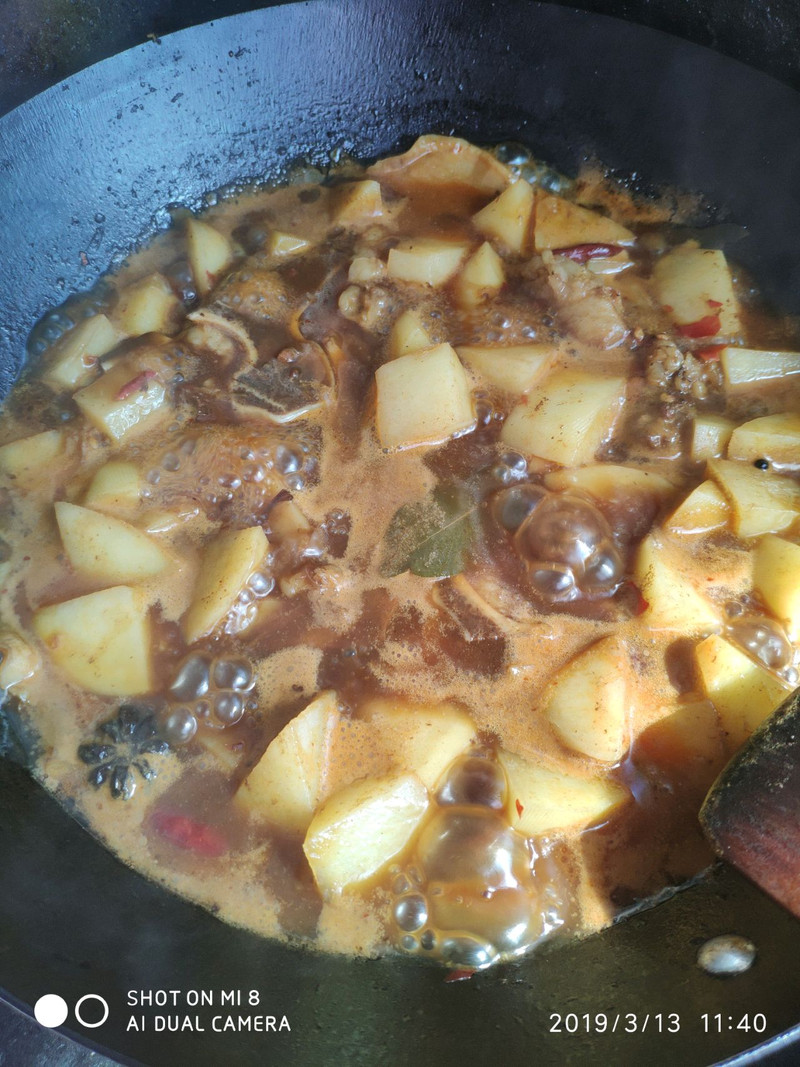 尽量多放水,炖牛骨的时候,注意看锅里的汤,不要烧干。土豆放进去的时候,水也要没过土豆。醋是提味的建议放一点。