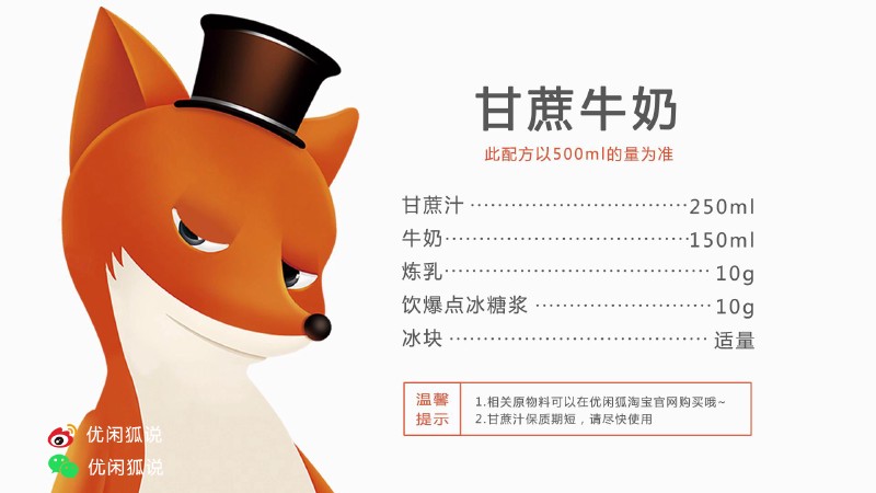 想要了解更多的网红奶茶配方教程,可以关注我们的微信公众号【优闲狐说】了解更多哦~
