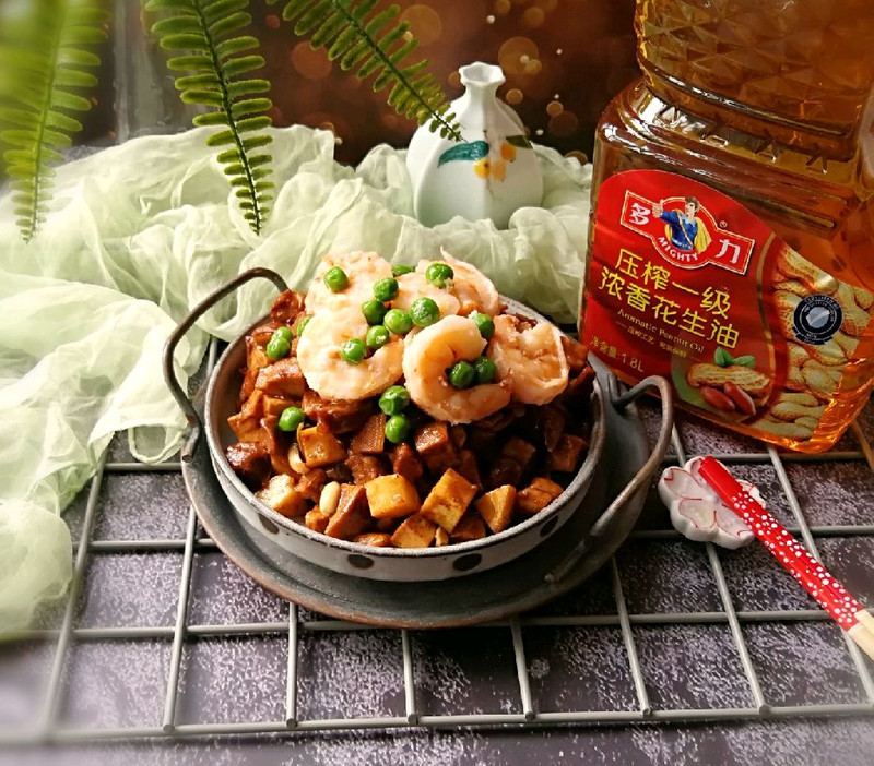 用多力浓香花生油炒出的虾仁 鲜香滑嫩 让这道菜更加丰富 生动。