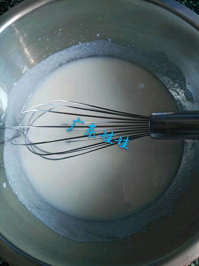 我这个蛋糕卷有一点白,因为我多放了两个蛋白,少放一个蛋黄,因为早上就用蛋黄去给小孩蒸肉吃,就剩下了多的蛋白。这样就不会浪费啦,你们可以按照正常的量来做就行。