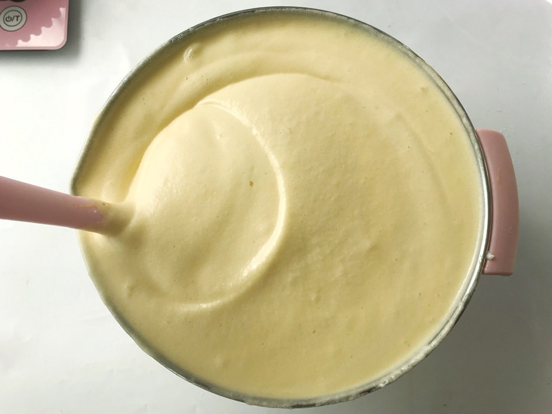 使用烫面和水浴法相结合,烤出来的蛋糕湿润、松软、细腻,加了炼乳,香味更加的浓郁