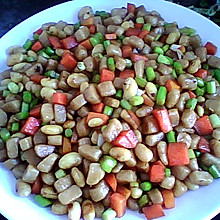 面粉加适量盐和成比擀面条的面团稍硬方可,盖上湿布醒着,利空醒面的空闲准备配菜,只要不是叶子菜,其他大多可以利用,并且可以荤素搭配,不吃肉可以全素,吃肉的可以放些肉丁 火腿 鸡丁之类的,只不过需要事先炒至断生,食材均切成小丁,不爱熟的蔬菜需要焯水断生,准备完毕就可以动手做疙瘩了。炒疙瘩的烹饪技巧