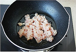 1、鸡肉先砸一下,再切丁,鸡肉更好入味,用蛋清和淀粉给鸡丁上浆,滑炒的时候鸡肉更滑嫩