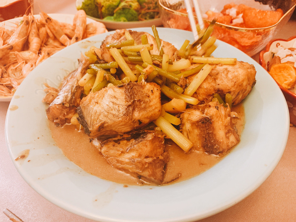 记得❣️要把蒜薹翻炒后再跟鲅鱼一起煮。
