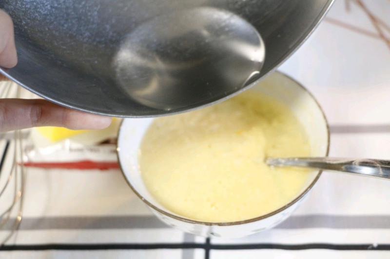 椰子油一定要融化才能加入面糊,油温别太烫,微微温热正好