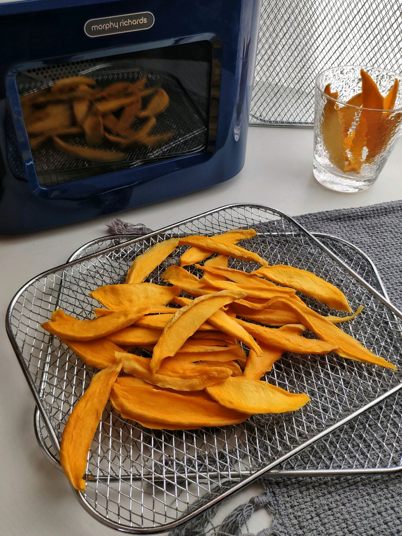 所以还是自己在家制作比较靠谱。很多人觉得太麻烦,宁愿买也不愿意做。其实做法超级简单,将芒果去皮切片再设定时间烘制,只需等几个钟便能吃上美味的果干了。而且因为制作很简单,我还经常让我家桐桐一起帮忙,让她体验一下做美食的乐趣。