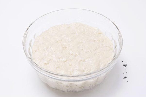 【洗面筋剩下的水怎么用?】静置一夜,把表面上一层黄色的水倒掉,再加入少量清水,搅拌均匀就成了制作凉皮的面浆了,放入披萨盘中蒸熟就是凉皮啦!
