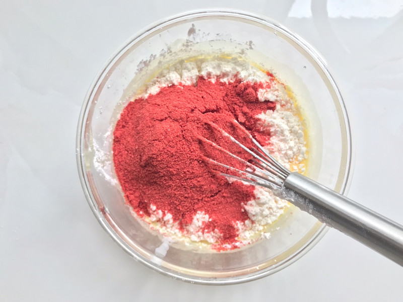 就像美食一样,当你认真起来,攻无不克,大厨的风范就来了,哈哈……在美食上自己还只能算个吃货,偶尔碰到好吃的就想秀一下,今天的这款蛋糕只能算是凑巧,本想做戚风蛋糕的,找粉找出来袋丝绒蛋糕粉,想加草莓,家里没新鲜草莓了,就又开始找,找到了冻干草莓粉,这样拼拼凑凑就出来……惊喜无处不在,超嫩,草莓味十足,好吃,好吃……