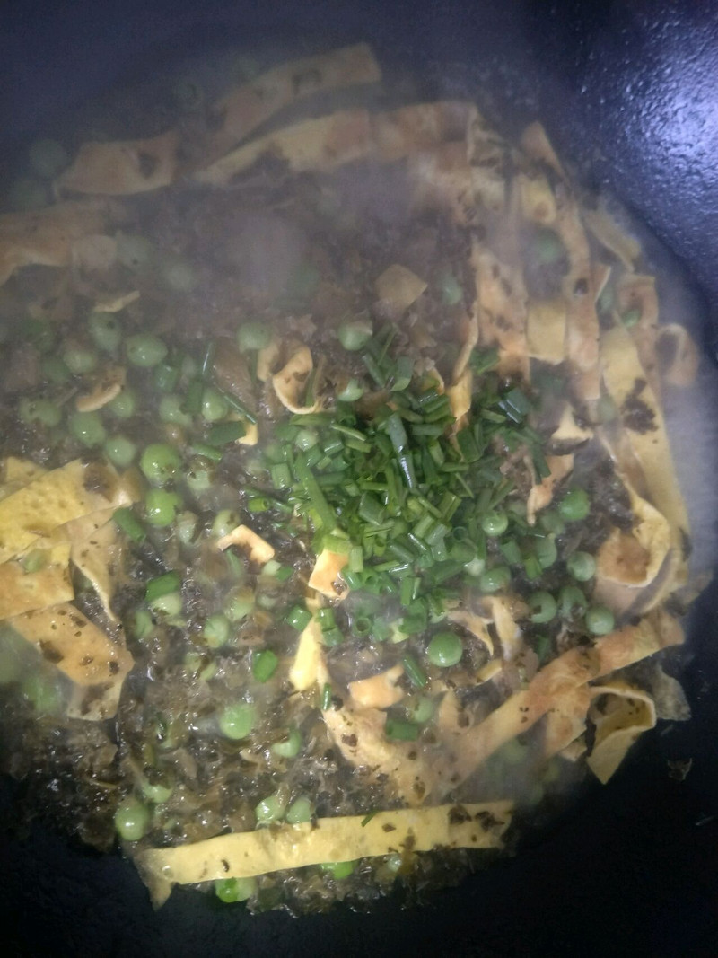 每年五一前后就是家里豌豆成熟能吃的时候,妈妈特地过来看我,就给我带上了自家的豌豆,烧上一碗从小吃到大的雪菜豌豆蛋皮汤,好吃~~~,妈妈的味道,家的味道。