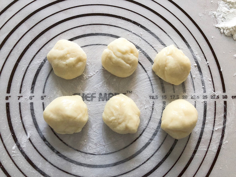 雪媚娘皮可以分成8个,6个,5个都行,内馅可以用各种水果,也非常好吃