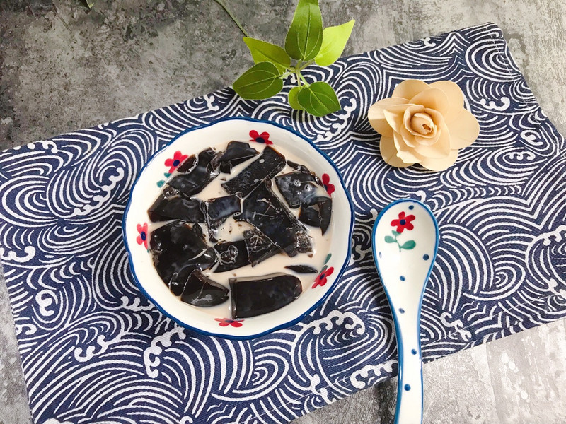 我用的江门黑凉粉粉,说明书上说1盒配2300克水,我配了2200克水口感是我喜欢的