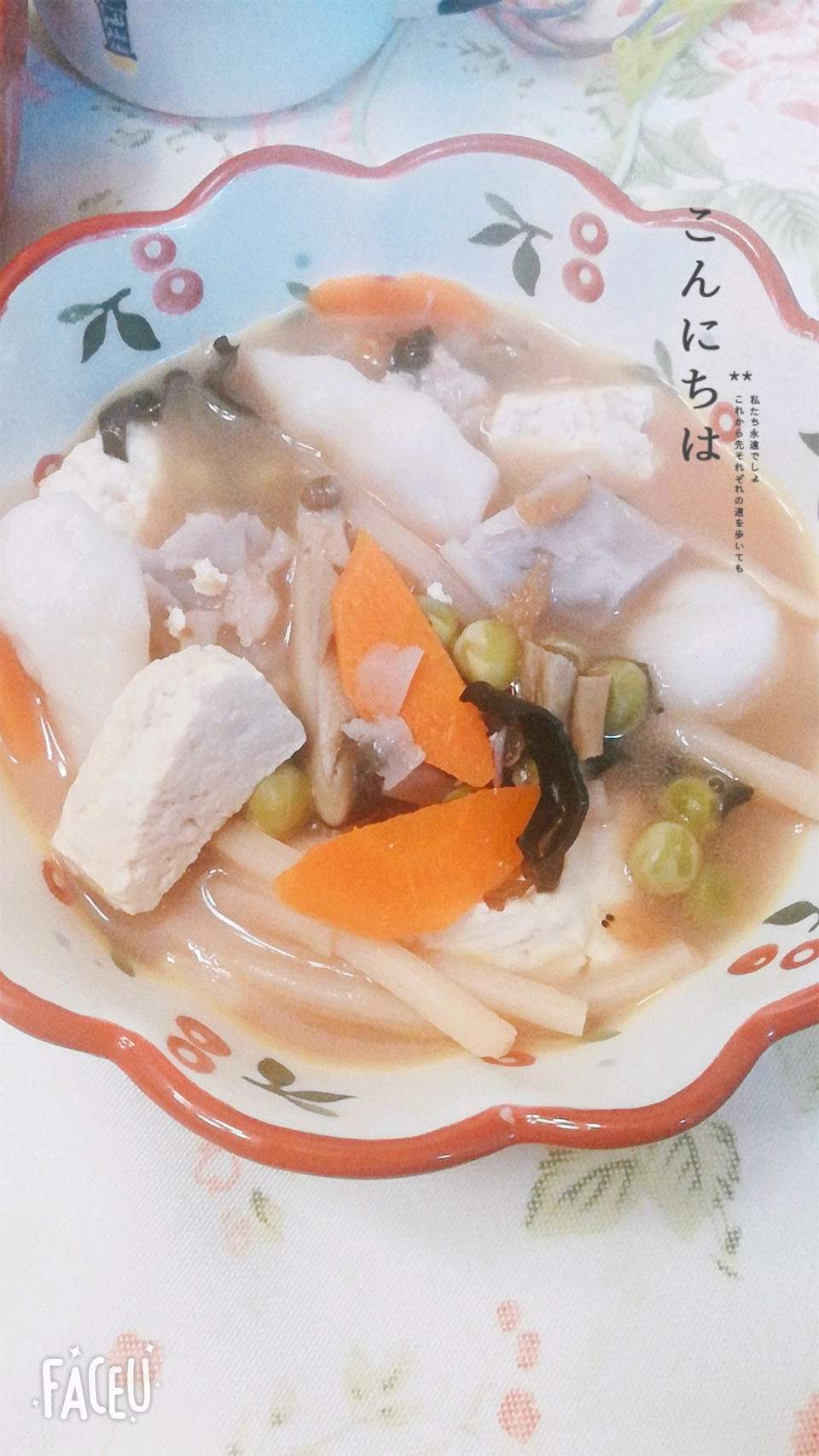 配菜可以按自己口味搭配,可以放土豆,或用目鱼干做汤底也很好吃。