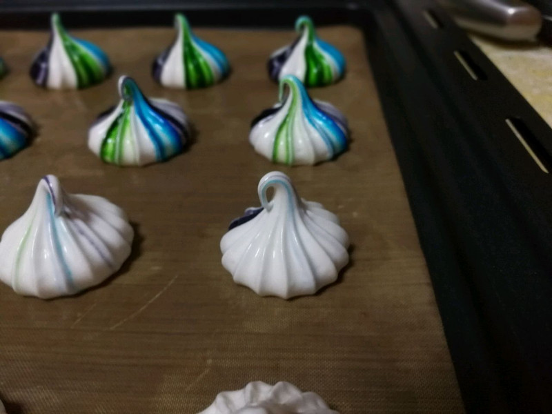 2.每个烤箱温度不一样,你可以先上下管都100度烤试试,我也是反复实验好几次才找到合适的温度和烘烤时间,上火太大会导致颜色发黄就不漂亮了。还有判断有没有烤好,首先要底不沾油布,然后你咬一口,里面是干的,或者用手摸外壳,模上去整个都硬了就是好了。