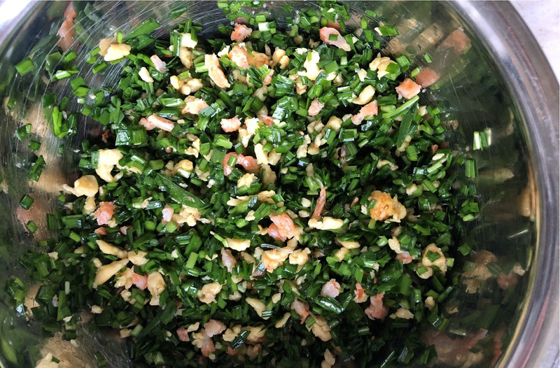 ♡韭菜切碎后,放入一点食用油拌匀,可防止出水