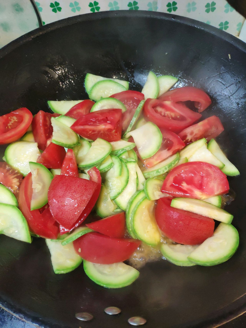 番茄很美味 和西葫芦搭配口感很好 营养价值也很高 在小九家 这道家常菜上桌的概率很高哦!因为小九觉得特别下饭 可能和小九爱吃番茄有关hoho