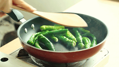 1.炒辣椒时,锅烧热不用放油,直接下辣椒炒。