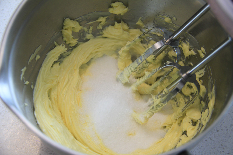 15、制作奶酪夹馅:将淡奶油加入糖打发至有纹路的状态。