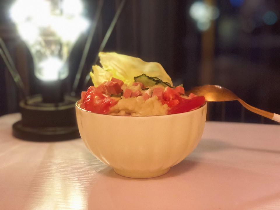 3.最后的小蔬菜随自己口味添加即可,还可以加点胡萝卜呀啥的,建议黄瓜薄片可以多放,真的很提鲜呐!