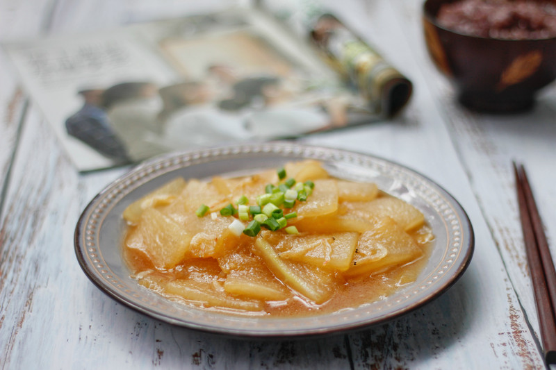 2.制作炒冬瓜的时候尽可能稍微切薄一切,会更好熟透。