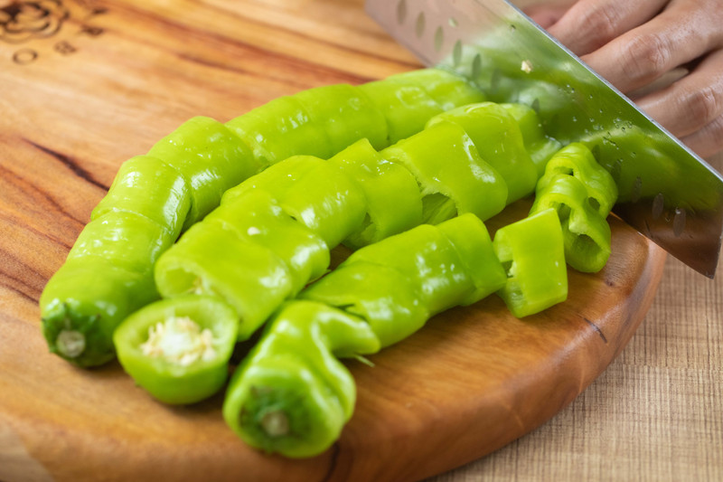 1、辣椒要选择微辣或者不辣的那种,切段后要把辣椒籽掏空,降低辣度才能更好衬托鱼滑的鲜嫩。