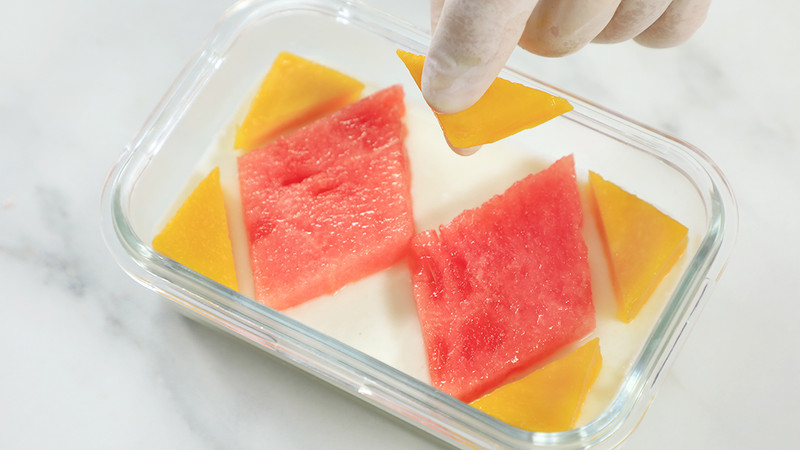 ●西瓜和芒果中妈妈们可以替换成其他宝宝爱吃的水果哦。