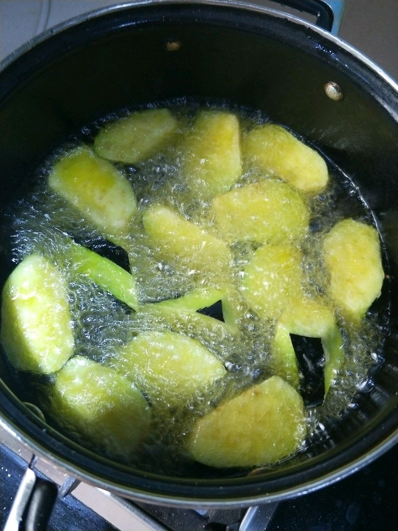 1,炸茄子的时候油温需要高一些,低温炸制的话,会使茄子吸收多余的油份。