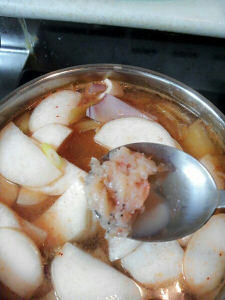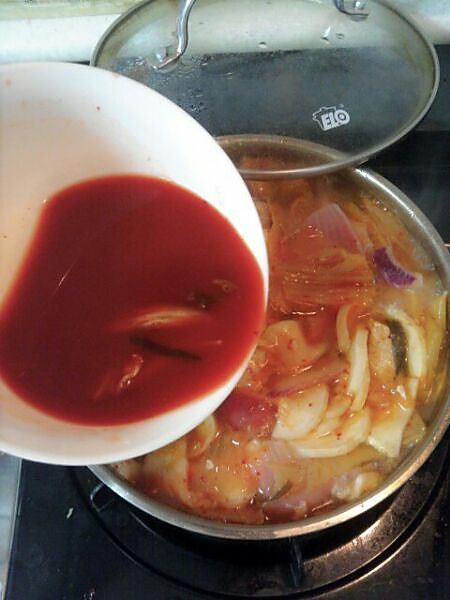 一定要将泡菜挤干,留下泡菜水,这是泡菜汤的关键