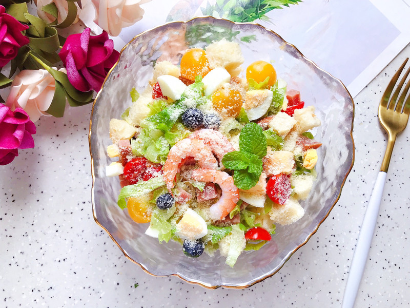 你当前的位置:豆果美食 > #冰箱剩余食材大改造#白土司鸡蛋鲜虾果蔬沙拉