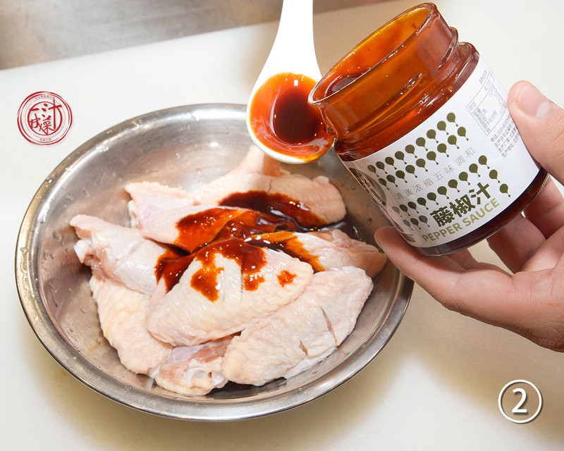 今天要给大家介绍一道新鲜的菜:藤椒蒸鸡翅。没有错,藤椒麻辣清新的口感,和软嫩的鸡翅搭配,再加上用蒸的方法,既简单方便又可以保证不会流失鸡翅本身更多的汤汁。因为新鲜的藤椒十分难买且不易保存,而藤椒油更适合凉拌或者爆炒的方式,故此我们采用了一汁成菜的藤椒酱,作为鸡翅的腌制调味汁。让鸡翅能够充分吸收藤椒的味道,同时在蒸制过程中还可以把藤椒的香气尽情挥发。10分钟以后,一开盖仿佛就闻到了川菜最经典的麻辣味道,其中还带着一丝植物的清香,简直是完美的菜肴了。