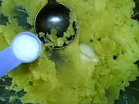 月饼模具中正好有一个桃形,可以印出整齐划一的寿桃,但表面的花纹就别太指望了,两面一煎,多半什么花纹都平掉了。还真没什么花纹了,并不是煎烙的结果,而是,土豆泥不能从模具中全身而退,只好变成了平面的寿桃。这倒没什么关系,有桃形就成。