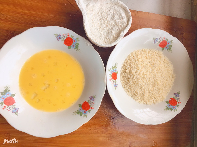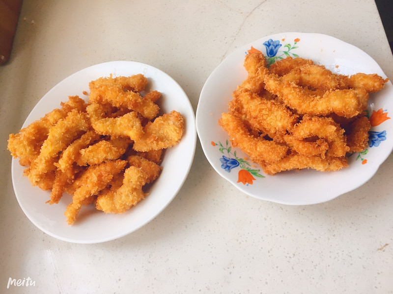 炸的时候一定要注意火候,不能着急,面包糠很容易糊掉的!一定要小火慢慢炸!!为了大家能看清每一步的步骤,繁琐了一点儿!!