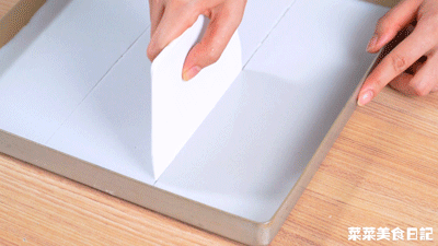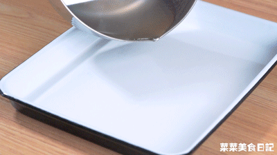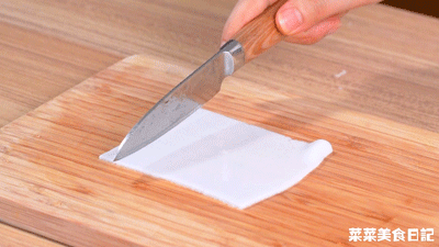 凝固后取出,切成长方形的一大片,肠粉皮完成