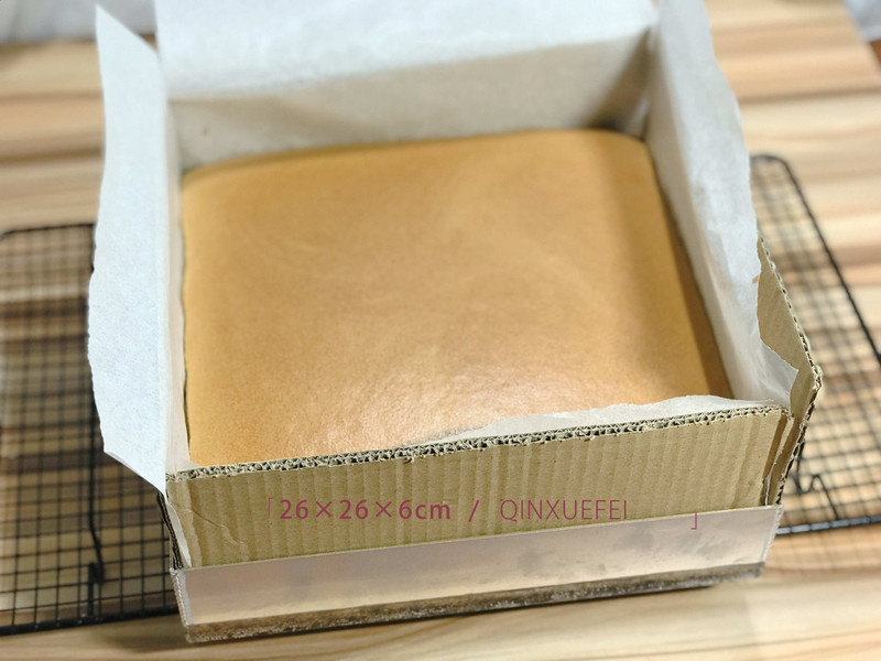 17准备蛋糕烤盘,找个纸箱子,剪出几个可以放进烤盘四边的纸片,纸板高出一部分,里面铺油纸,油纸光面在外,毛面在内侧不然影响蛋糕爬升,加入硬纸板的作用是,一部分辅助蛋糕糊量多长高,主要是防止四周边缘上色,符合古早味的外形,很多亲问我纸板会不会烤着火,不会的哦,水浴呢蛋糕的烹饪技巧