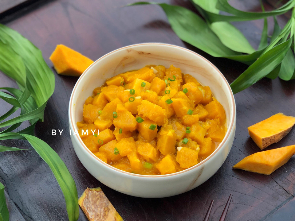 2、因为南瓜自带甜味,所以只需要加少许盐调味即可;
